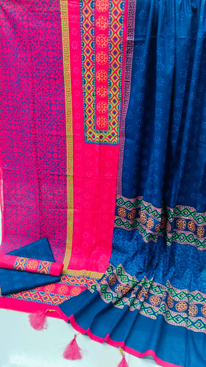 -কামিজ : অর্ক ভয়েল এর উপর হাইকোয়ালিটি ব্লক প্রিন্ট করা।